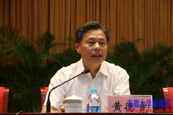 黄德宽说,近年来,学校高质量地完成了“十一五”和“211工程”三期各项建设任务,实现了“十二五”的良好开局,各项事业快速发展,学校综合实力不断增强,高水平大学建设步伐加快。这些成绩的取得,凝聚着全校师生员工的心血和汗水。当前,我国即将开始由高等教育大国向高等教育强国迈进的新征程,安徽省第九次党代会确定了“打造三个强省、建设美好安徽”的宏伟目标,安徽大学作为安徽省属惟一一所“211工程”重点建设大学,担负着支撑安徽发展的历史重任和责任,全校教职员工应牢固树立机遇意识、改革意识和创新意识,把握历史机遇,主动、积极地服务国家,特别是区域经济社会发展,全面提高教育质量,努力加快推进我校“国际知名、国内一流高水平大学”建设的步伐。