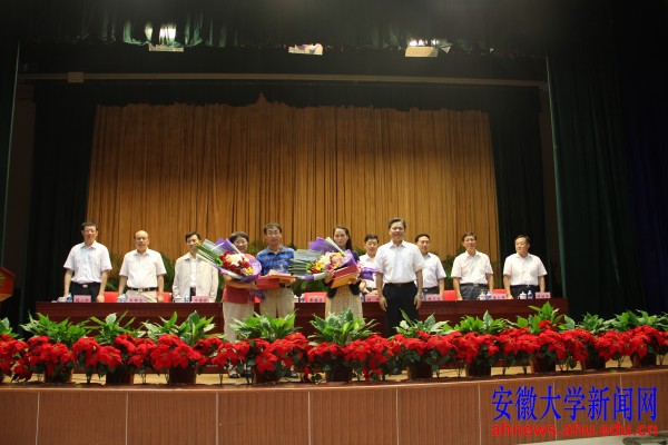 宝钢教育基金优秀教师奖获得者代表、数学科学学院教授陈华友,安徽大学2010、2011年度“三育人”先进个人代表校团委副书记高贵和,安徽大学第五届“李世雄奖”获得者代表、生命科学学院荚荣教授,2012年新进教师代表、计算机科学与技术学院