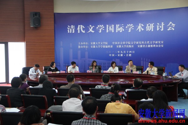本网讯(学生记者 关丽楠 余春阳)9月14日上午,由安徽大学文学院、中国社会科学院文学研究所古代文学研究室主办,《安徽大学学报》编辑部、安徽大学出版社、安徽省古籍整理出版办公室协办的清代文学国际学术研讨会在磬苑校区行政楼B204会议室开幕。来自罗马智慧大学东方学院、日本南山大学、韩国庆熙大学、中国社会科学院、香港大学、香港岭南大学、台湾政治大学、北京大学、复旦大学、南京大学、南开大学、武汉大学、中山大学和安徽大学等高校和科研机构的专家学者,将在为期2天的会议中围绕清代文学的相关议题展开研讨。
