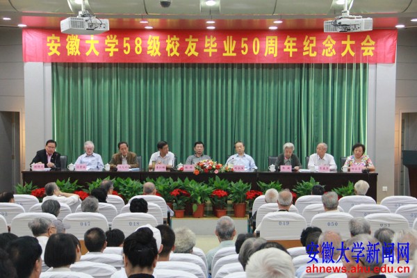安徽大学原副校长刘永生教授作为教师代表发言。他说,58级校友为安大的建设夙兴夜寐、流汗流血,安大的一草一木都凝聚着各位校友的智慧和汗水。艰苦的大学生活使大家的意志更加坚强,各位校友不畏困难、学习刻苦、品德端正、成绩优秀,成为学弟学妹们学习的榜样。当年的每一位教师与同学们一起劳动,一起上课,心往一处想、汗往一处流,相处十分融洽,58级校友毕业后,你们为国家、为民族作出了骄人的成绩,为母校增了光、添了彩。在各位校友的关心支持下,经过全校师生员工的奋力拼搏,安徽大学一定能够建设成为国际知名、国内一流高水平大学。