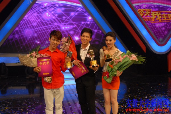 杜肖宇(中)获第二届星尚频道主持人大赛《今天我主持》冠军