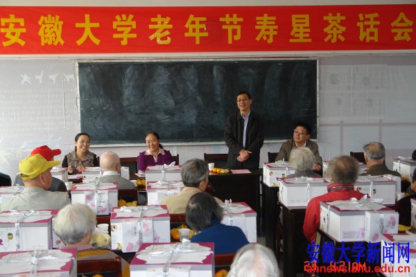 校党委副书记李仁群出席祝寿会并发表热情洋溢的讲话。他代表学校向为新中国成立立下汗马功劳、为现代化建设和发展做出贡献、为安徽大学高水平大学建设呕心沥血无私奉献的老同志表示衷心的感谢和真挚的祝福,并祝全校离退休人员中国传统节日重阳节快乐。