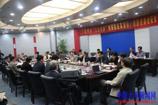 安徽省皖北办专职副主任殷君伯,安徽省新农村建设办公室常务副主任聂苏,省委副秘书长方正,省政府副秘书长、研究室主任韦伟,省国土资源厅调控监测处处长黄发儒,省经信委副主任汪春生,省委党校管理学教研部主任高淮成,省社科院农村经济发展研究所副所长谢培秀,皖西学院院长张文兵,省城乡规划院总规划师刘复友,安徽大学马怀礼教授,省发展研究中心巡视员戴培昆,安徽大学胡艳教授等专家先后发言,围绕着课题研究报告展开交流。