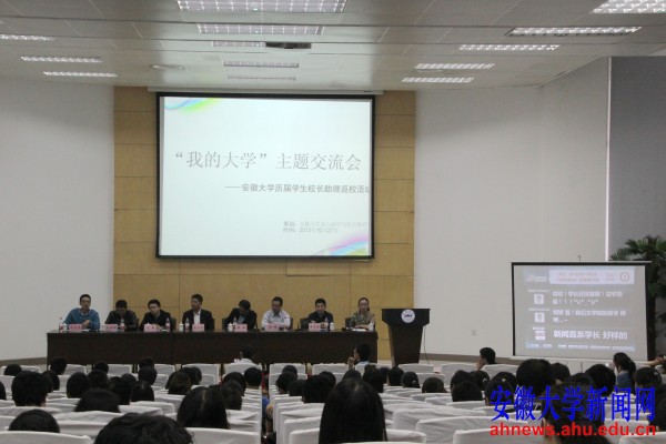 本网讯(新闻中心通讯员赵欢欢,学生记者接丹丹 梁双舟 路梦)10月27日下午,“我的大学”主题交流会——安徽大学历届学生校长助理返校活动在磬苑校区博学北楼水上报告厅展开。7位历届学生校长助理参加了此次交流会。交流会由现任学生校长助理吴琼主持。