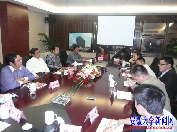 在科大国创软件股份有限公司,李仁群一行与公司负责人和部分校友进行座谈。公司总裁董永东说,安徽大学毕业生已成为科大国创主要的员工来源,他们中很多人已成长为公司的骨干力量,公司6个事业部中有4个事业部负责人来自安徽大学。李仁群对公司为我校毕业生提供优良的发展空间表示感谢。他希望双方在现有人才招聘基础上,在学生培养、科学研究等方面积极开辟交流合作新途径,努力实现校企共赢。