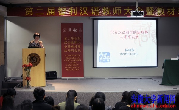 在智利汉语教师大会上,杨晓黎做了“世界汉语教学的新形势与未来发展”的专题讲座,从宏观的角度介绍了国内、国际汉语推广事业的现状,并对未来的发展形势进行了展望。