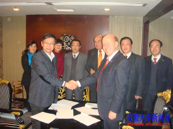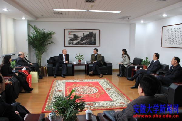 副校长牛立文在磬苑校区办公楼B202会议室会见了罗伯特·拉封登一行,双方就管理体系、学生学费、奖学金设置、申报时间等合作办学事宜进行了深入交流探讨。双方商议以安徽大学圣托马斯学院的名义共同向中国教育部进行申报,将在既符合中国教育体制要求又兼顾智利的教育特点情况下,建立混合教学体系,组织相关教学活动,努力培养高质量、具有国际化视野的优秀创新人才。