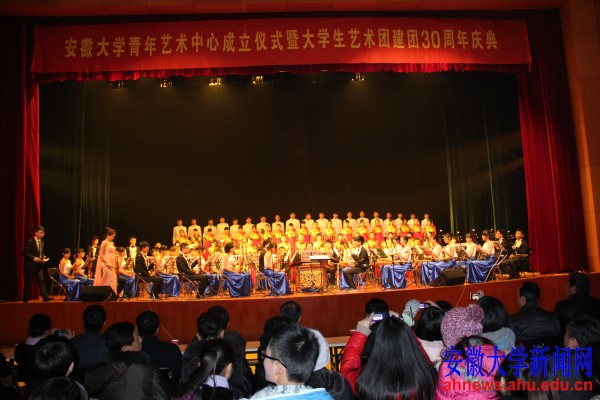音乐会在民族交响乐团、管弦与电声乐团、合唱团共同带来的一曲欢快的《春节序曲》中拉开帷幕。大学生艺术团指导老师王晓莉、吴婉婷也先后登台为大家献唱黄梅戏《到底人间欢乐多》和《女儿情》,青年艺术中心同学们带来的音乐串烧《爱》、《不想长大》、《相亲相爱的一家人》将音乐会现场气氛推到高潮。