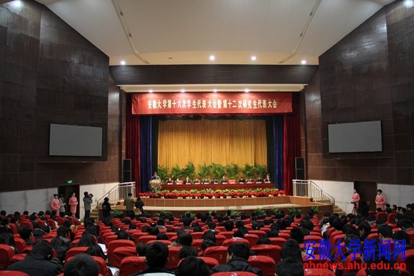 据悉,为期两天的安徽大学第十六次学生代表大会暨第十二次研究生代表大会将分别听取上一届委员会工作报告、提案工作报告、学生会和研究生章程修改说明,选举产生新一届学生会和研究生会委员会。开幕式后,学代会代表听取了由校学生会主席石午乐受第十五届学生委员会的委托,所做的题为《继往开来求真务实引领并服务全校同学成长成才,肩负使命躬身实践凝聚并带领全校同学创先争优》工作报告。研代会代表听取了由校研究生会主席黄世宝受第十一届研究生委员会的委托,向大会所做的题为《引领思想勇于创新开拓进取求真务实,开创安徽大学研究生会工作崭新局面》工作报告。