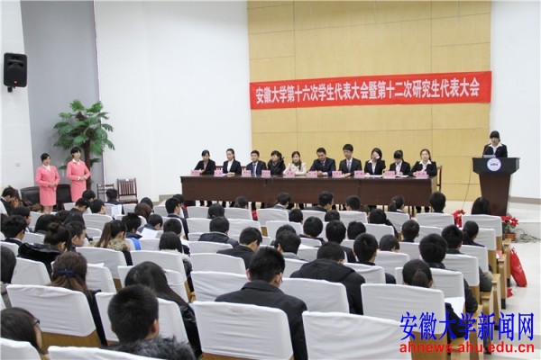 第十六次学生代表大会主席团成员石午乐在闭幕词中说,新一届学生委员会、研究生委员会将立足于广大同学们的愿望和期盼,引领全校学生开拓进取、奋发成才,为把安徽大学建设成为“国际知名、国内一流高水平大学”而奋斗。