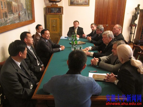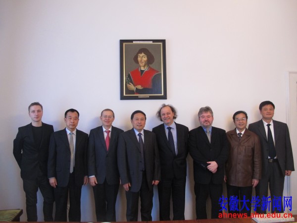 波兰哥白尼大学建于1945年,位于波兰北部的托伦城,是波兰北部办学规模最大的综合性大学,也是波兰排名前5位的大学之一。代表团访问期间与哥白尼大学副校长Wlodzislaw Duch 举行了会谈。杜先能说,安徽大学正在积极建设“国际知名、国内一流高水平大学”,与包括哥白尼大学在内的世界知名大学开展交流与合作是安徽大学国际化建设的重要组成部分。两校在哥白尼大学共同建立的中国语言文化中心是两校交流合作的标志和新的平台,必将推进两校间的良好友谊不断巩固和发展。Wlodzislaw Duch对代表团的到来表示热烈欢迎,充分肯定了两校近年来合作交流取得的成果,希望在中国语言文化中心建设、援建哥大中文系、派遣汉语教师等方面继续得到安大的支持和帮助。