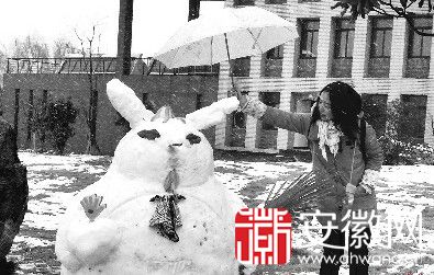 “龙猫!龙猫!”昨天下午,在经开区安徽大学新校区东门口,两名女同学像发现了新大陆一样惊呼起来。原来,在她们的面前出现了一只“龙猫”雪人。看到这平时很难见到的“龙猫”,两人赶紧与其合影。