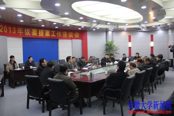 本网讯(学生记者 王炎 王怡萌)1月11日下午,学校在逸夫图书馆第三会议厅召开2013年议案提案工作座谈会。校党委书记黄德宽、副校长牛立文,我校各级人大代表、政协委员、省政府参事,学校有关部门负责人出席了座谈会。座谈会由校党委副书记李仁群主持。