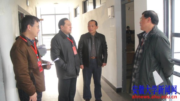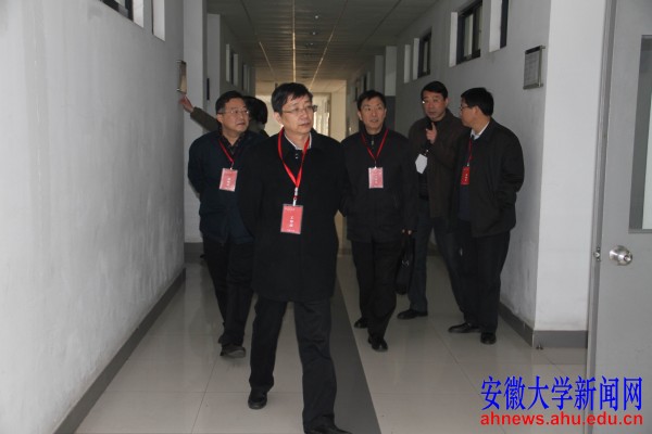 校领导程桦(前)、王源扩(后排右三)、许继荣(后排左一)等检查开学首日教学运行情况