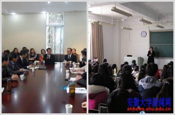 3月27日下午,在外语学院,菊地向师生介绍了日本的家庭生活以及和服穿着的习俗,图文并茂,让学生对日本文化有了更进一步的了解。远藤隆俊以《土佐的汉籍与中日交流》为题,介绍了日本文典藏库中现存的中国古代文献,进一步说明中日交流历史源远流长。他还介绍了日本语文法与汉字训读的差异,并以“子曰:有朋自远方来”为例进行了释读。