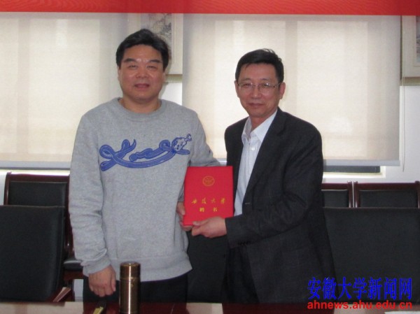 校长程桦(右)向刘强教授颁发聘书