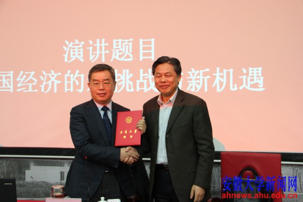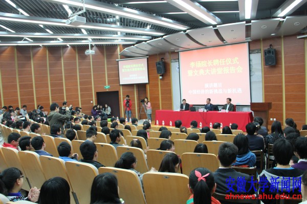 本网讯(新闻中心)4月3日上午,学校在文典阁报告厅举行仪式,聘请校友、中国社科院党组成员、副院长李扬担任安徽大学经济学院院长。