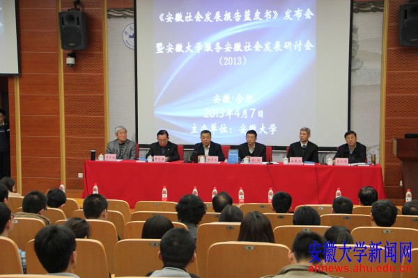 发布会由校党委副书记李仁群主持。中国社会科学院社科文献出版社社长谢寿光、安徽大学校长程桦、安徽省社会学会会长黄家海、安徽省人口与计划生育委员会副主任高俊文、安徽省社会科学院研究员王开玉、安徽大学社会与政治学院副院长范和生先后发表讲话。