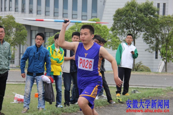 本网讯(学生记者 刘婷君 吴晓凡)阳光暖暖地照在一个健壮稳重的身影上,他屏气凝神注视着前方,几步加速后,标枪从他右手飞出,远远地落在50.70米的位置上。他就是本届校运会标枪新记录创造者和铁饼单项第一名、电子信息工程学院大二学生王瀚鹏。