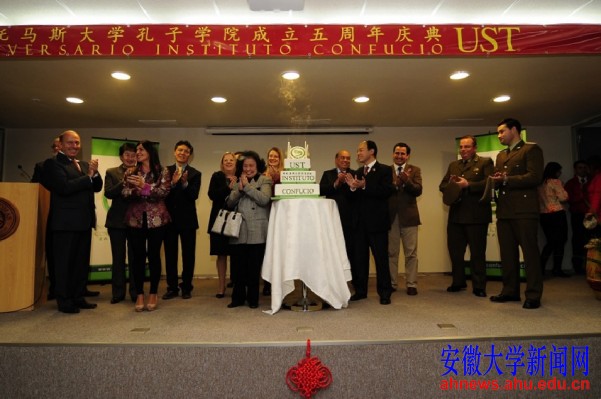 活动现场,舞龙舞狮队用精彩的表演给活动助兴,孔子学院学生表演了歌曲演唱、诗歌朗诵、中国功夫、《茉莉花》舞蹈等文艺节目。演出结束后,大家分别用汉语和西班牙语齐声演唱《祝你生日快乐》,共祝孔子学院五周岁生日快乐,祝愿孔子学院再创新的辉煌。