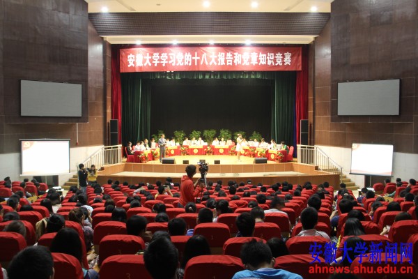 本网讯(学生记者钱阳 贺子卓)为深入学习宣传贯彻党的十八大精神,迎接建党92周年,5月10日下午,安徽大学学习党的十八大报告和党章知识竞赛决赛在磬苑校区艺术楼小剧场举行。校党委副书记李仁群出席活动并为获奖代表队颁奖。
