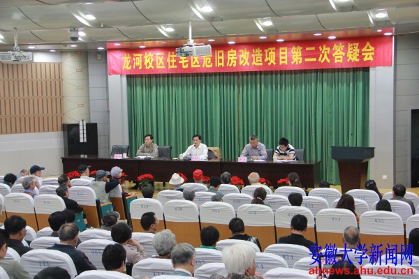 本网讯(学生记者 钱阳 朱陶)应合肥市蜀山区政府关于危旧房改造以及龙河校区拟征收范围内住户的要求,5月30日下午,龙河校区住宅区危旧房改造项目第二次答疑会在逸夫图书馆第一会议厅召开。蜀山区住房和城乡建设局副局长、蜀山区大建设指挥部办公室常务副主任郑勇,蜀山区三里庵街道党工委书记海飞出席答疑会,我校部分教职工及住户共两百余人参加了会议。