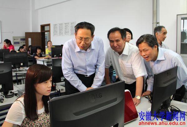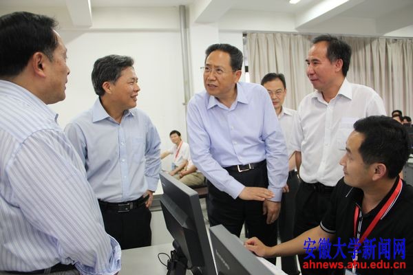 在校党委书记黄德宽、副校长杜先能的陪同下,李锦斌调研考察了我校国家级新闻传播实验教学示范中心、安徽大学电视台演播中心和国家级经济管理实验教学示范中心,并检查指导我校高考评卷准备工作。