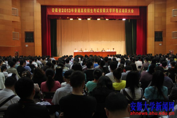 本网讯(新闻中心 陈欣,学生记者 曹俊松)6月11日上午,安徽省2013年高考评卷安徽大学评卷点动员大会在磬苑校区适之楼多功能厅召开,我省高考语文学科评卷工作正式拉开帷幕。会议强调,高考评卷要全面贯彻“公平、安全、科学、规范、准确”的基本原则,根据答案,依据细则,给分有理,扣分有据;宽严适度,前后一致,把握尺度,掌握进度;控制误差,杜绝硬伤,一把尺子量到底,切实做到让考生放心,让人民满意。