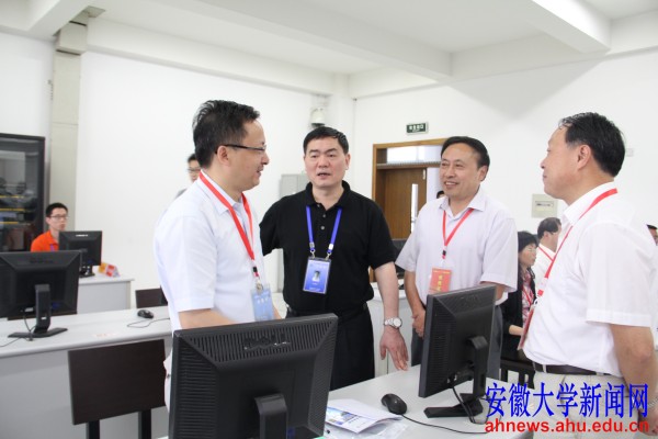 在评卷办公室,李和平与我校评卷工作各个小组负责同志亲切交谈。李和平说,在详细参观评卷现场,深入了解评卷过程后,更能真切体会到高考评卷工作的公正、公平。安徽大学作为安徽省普通高校招生考试网上评卷基地,多年承担高考评卷工作任务,积累了丰富的经验,取得了优异的成绩,为我省高考评卷的圆满完成做出了突出的贡献。希望各工作小组继续按照严密组织、严格规范、严谨做事、严肃纪律的要求,圆满完成评卷工作任务。