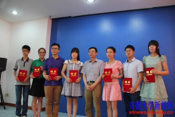 校长程桦(右四)向新任学生校长助理颁发聘书