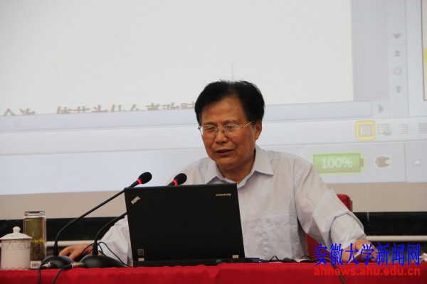 本网讯(新闻中心学生记者 梁双舟 吴晓凡)6月19日晚,安徽大学“阅读经典”系列活动第十六场,以“怎样读唐诗”为主题的文典沙龙,在磬苑校区文典阁学术报告厅举行。我校文学院教授、唐诗研究专家汤华泉主讲,校图书馆党总支书记曹高峰主持。