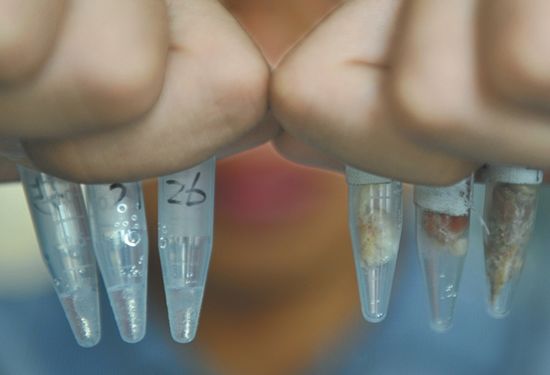 食品安全是老百姓最关心的问题,很多人觉得街边羊肉串没有“羊肉味”,猫肉、鼠肉冒充羊肉的报道也屡见不鲜。今年4月份,09级生物科学专业的薛纯开始了“用DNA鉴定羊肉串真伪”的研究。“在采集的66个样本中,经检测真羊肉只占不到20%,猪肉占68.2%,鸡肉占6.1%,鸭肉占4.5%,牛肉占1.5%。而一块钱一串的样本中90%都是猪肉,两块钱一串的样本中羊肉所占比例为75%。”薛纯告诉记者,抽样检测需要3天时间,花费30元左右。他对自己的研究很自信,“因为基因是不会说谎的。”