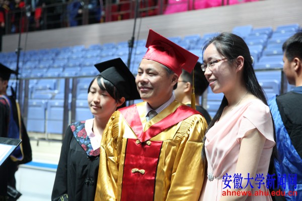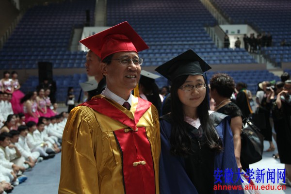 毕业典礼现场,校领导黄德宽、李仁群等还同一些毕业生和家长亲切交流、合影留念。