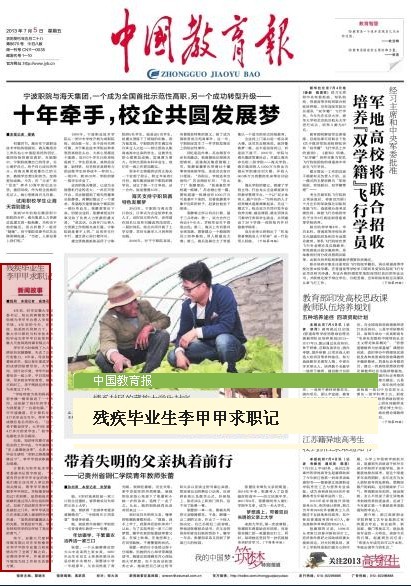 但是,知识终究要付诸到现实的工作中去。今年被称为“史上最难就业季”,众多大学毕业生感叹“求职之路漫漫其修远兮”。李甲甲的求职路更加艰难。