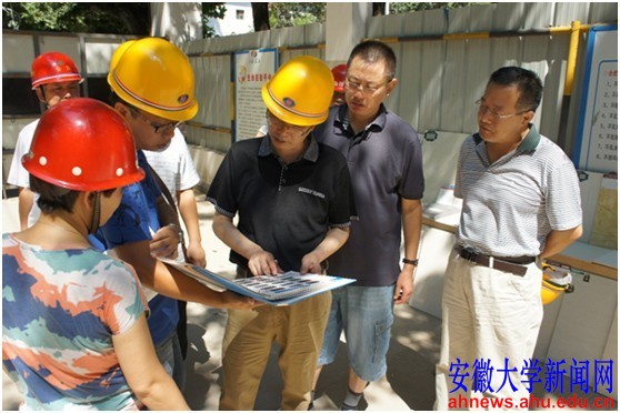 今年暑假,基建处承担的近30个新建和维修改造项目正在施工。根据学校党委相关文件要求,并结合工作实际,基建处第一时间积极开展了为期一周的教育实践活动。党员干部亲临工地,督促检查,送去学校的关心和慰问。8月6日,校长程桦、副校长许继荣冒着酷暑亲赴各施工现场慰问奋战在高温一线的施工人员,为他们送去矿泉水等防暑用品。