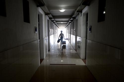 8月27日,一名新生进入宿舍楼。新华社记者 张端 摄