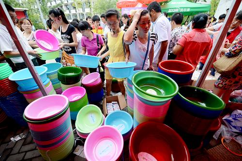8月27日,新生和家长选购生活用品。新华社记者 张端 摄