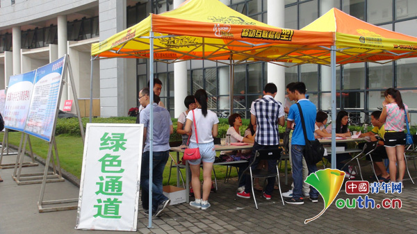 为解该校“绿色通道”的畅通度,记者初步体验了“绿色通道”申请的过程。从距离“绿色通道”较远的历史系报到点递交材料,经院系负责人同意,填写“绿色通道”申请表,再到“绿色通道”咨询、完成审核这一系列的程序,只需要短短15分钟。记者随机采访了各个院系,均有志愿者专门负责新生的资助申请工作。第一个来到“绿色通道”进行申请咨询的岳同学就是在他直系学长刘同学的引导下顺利进行报到的。“我是自己一个人来学校报到的,很感谢老师、学长们的帮忙让我办完了助学贷款和入学手续,是他们让我报到第一天可以这么顺利。”