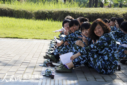 据悉,安徽大学2013级新生军训将于9月11日结束,届时,将举行军训汇报表演。(徐欣文 杨旭舟 摄)