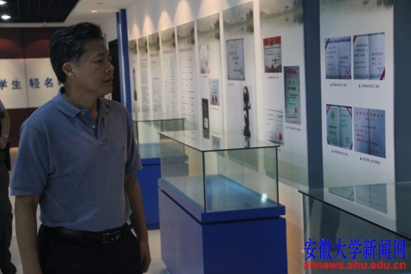 本网讯(新闻中心 李贤)9月5日上午,校党委书记黄德宽来到即将开放的安徽大学师德师风教育基地——李世雄教授事迹陈列展展室,实地检查指导布展情况。