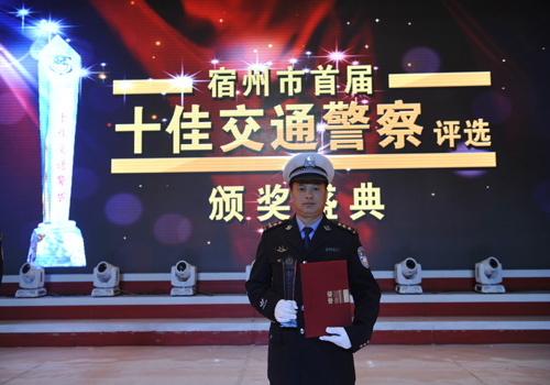 八月的一个夜晚,热浪袭人。安徽省宿州市电视台宽敞的演播大厅里,华灯齐放、观众爆满。在悠扬欢快的开场舞《路上坚守》的乐声中,宿州市首届“十佳交警”、“十优交警”颁奖晚会拉开了帷幕。当获得“十佳交警”光荣称号的市交警支队一大队事故中队指导员陈海涛登台领奖时,晚会出现了高潮。一位白发老翁推着一部轮椅车,车上坐着是他已瘫痪多年的妻子,当激情奔放的主持人把话筒递到这位老妪面前,问她认不认识站在身旁的陈警官时,她流着泪嗫嚅地说:“认识,他是一个好人!”