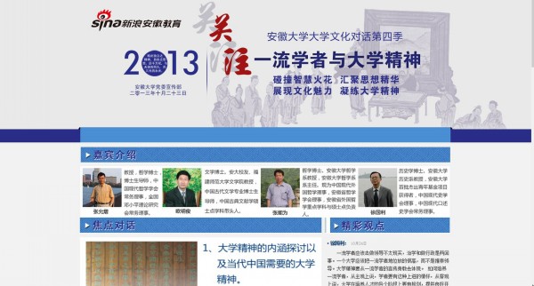 【新浪网】安徽大学大学文化对话第四季:一流学者与大学精神