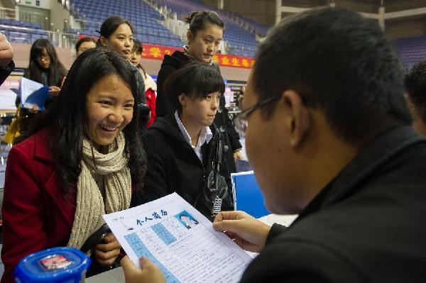 当日,位于合肥的安徽大学举办2014届毕业生冬季招聘会,来自全国150余家企事业单位参加。(新华社 发)