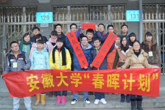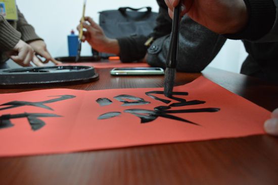 每逢新年送春联都是必不可少的一件事,为此春晖计划的志愿者们特别邀请了安徽大学书画协会的同学参与到最后一次的活动中,一起为社区的老人送上祝福的春联,“我是书画协会软笔部的一名成员,听说春晖有这样一个志愿活动,对象是帮助老人而且写春联是自己擅长的,觉得这件事情很有意义,也算是圆了自己一直想做志愿者的一个小小心愿吧,所以非常欣然的答应了,通过一下午的活动觉得自己这次真的收获很多。”高健同学第一次参与这样的活动,和他同行的还有一名协会成员,他们非常开心的说,如果以后还有类似的活动一定会来参与,每个人都可以是传递爱心,做志愿者,只要你愿意奉献出自己的力量。