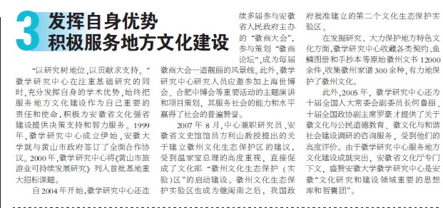 【中国社会科学报】积十四载之功 创徽学辉煌——安徽大学徽学研究中心建设纪实