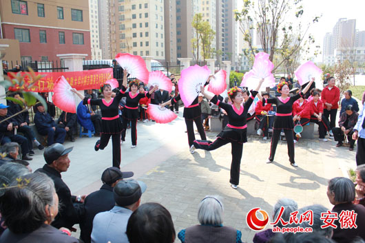 人民网讯 3月27日下午,合肥经开区临湖社区委联合安徽大学社工组织——春风小组和居家养老服务机构在吉祥广场为社区老人献上一场精彩的专场歌舞演出。