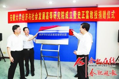 昨天下午,随着红盖头掀开,安徽大学经济与社会发展高等研究院正式成立。与一般学术机构不同,这个研究院是由安徽大学与著名学者史正富个人共同发起成立。史正富任院长。谈起与安徽大学合办研究院的想法,史正富笑说:“很随缘,刚开始并没有刻意的去做。”