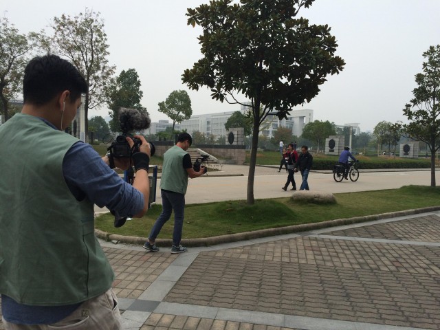 这些年老菲已经成为合肥各家媒体的常客,面对镜头他已是久经沙场,当然是轻松自如。另外值得一提的是,广东国际的同仁这次带来的设备已经完全小型数字化:一个佳能5D3,一个佳能C100高清摄像机,以及轻便的三脚架,彻底把摄像师的肩膀从重压下解放了出来。