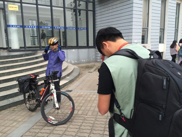 用广东国际频道同仁的话说,这位长得有些像憨豆先生的菲力普既诙谐逗趣,时尚新潮,又很接地气。在自行车越来越少见的今天,他却把自行车当作主要的交通工具,下了课带上帽子就成为半个赛车手,骑车奔赴自己在合肥的另一个据点:Tout Doux慢漫法式薄饼屋。瞧他这副打扮,还有些萌萌哒。