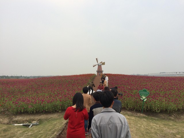 下午,摄制组一行又来到位于合肥西南方向的牛角大圩生态农业园踩点。看到了花海、风车、鱼塘、蓝莓生产基地等等。一边了解情况,一边构思拍摄内容和故事结构。期待过两天菲力普父女俩将在这里度过一个难忘的周末,也给我们摄制组足够多的惊喜!